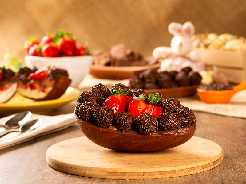 O ovo de colher costuma chamar muita atenção. Ele é mais recheado, mais cremoso e visualmente mais atrativo.